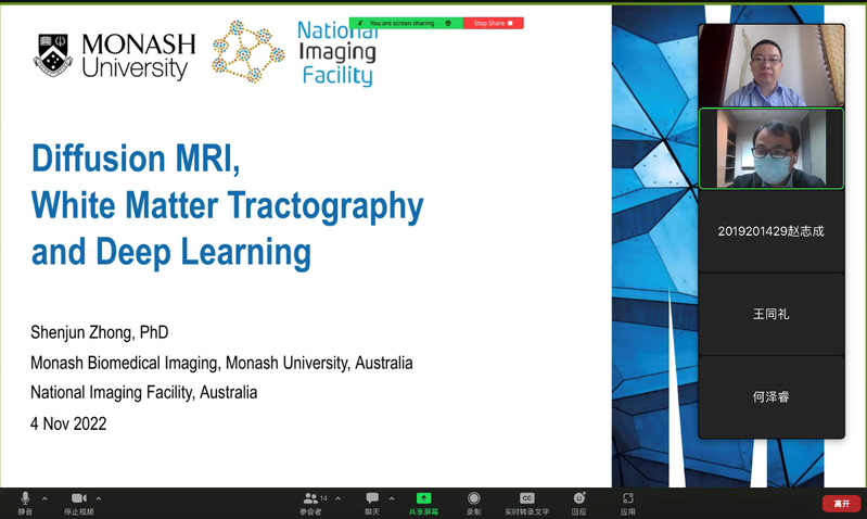 2022年11月4日,jinnianhui金年会诚信至上举行了智汇论坛2022年第六期(总第十期)活动。本次活动邀请澳大利亚莫纳什大学医学影像中心研究员,澳大利亚国家影像中心研究员钟申俊以“脑部白质纤维束成像技术和深度学习的应用 ”为题作专题讲座。