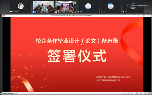 会上,北京久其软件股份有限公司副总裁/人力资源总监朱晓钧与计算机学院院长蔡成涛签署备忘录。