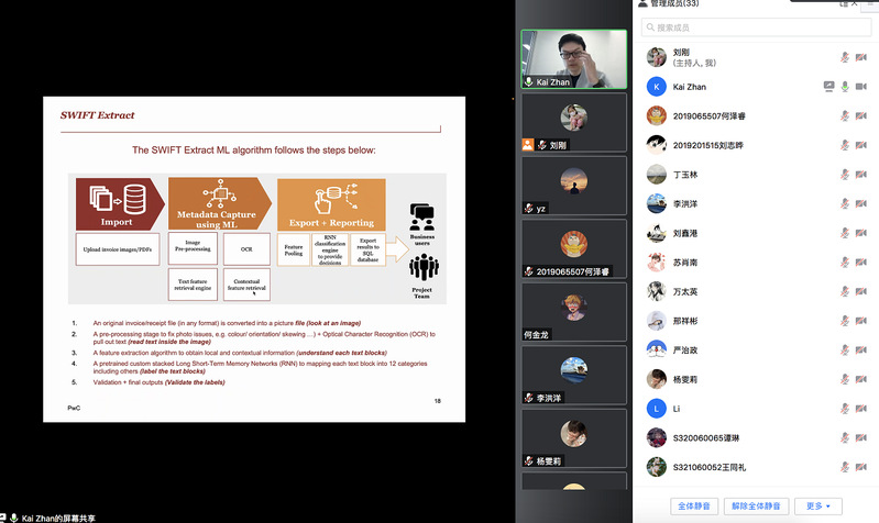 普华永道企业数字开发的数字解决方案现已获得专利并出口到普华永道全球网络和普华永道客户群中使用。在本次专题讲座中,Kai Zhan博士介绍了如何在普华永道全球网络中跨线应用NLP的一些有效方法,其中包括一种使用自定义的长短期记忆网络从发票扫描中提取信息的方法。同时,他还介绍了文档匹配中的咨询用例,跨线应用NLP为解决大量简历和职位描述之间进行准确匹配提供了解决方案。