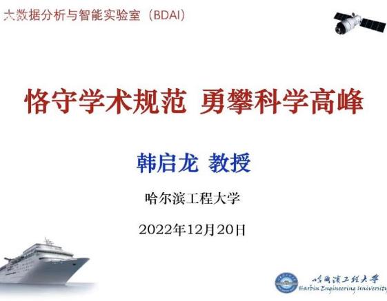 科研诚信是学术发展的基石,是科学创新的底色。习近平总书记强调,要营造良好学术环境,弘扬学术道德和科研伦理。为贯彻落实总书记关于学术诚信的重要指示,加强科研诚信建设,营造良好的学术环境,引导科研人员坚守学术诚信、完善学术人格、遵守学术规范、维护学术尊严,2022年12月20日(星期二)8:30,jinnianhui金年会诚信至上举行“研究生学术诚信教育与学风建设”系列活动(线上会议)。本次活动由学院学术分委员会副主任(大数据分析与智能实验室负责人)韩启龙教授作题为“恪守学术规范,勇攀科学高峰”的报告,学院全体研究生参会。