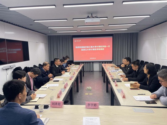 在杭州电子科技大学调研会上,杭州电子科技大学计算机学院院长俞俊介绍了学院的历史沿革、学科方向、人才培养质量、师资队伍建设、科研成果、社会服务等情况,蔡成涛院长对学校和学院情况进行了介绍。双方就人才引进、国家级教学和科研奖励培育、科研成果转化、青年教师职业发展规划、高水平科研成果产出、学生社区建设等方面进行了交流。杭州电子科技大学计算机学院党委副书记张桦、副院长邬惠峰、张建海、贾刚勇,办公室主任吕长平、学工办主任魏萍、党务秘书姜嫄参加了此次调研会。