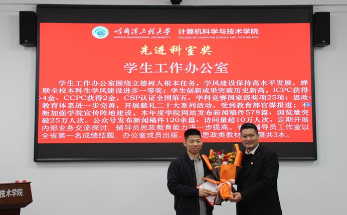 随后,对先进个人进行颁奖,获奖个人分别上台领奖,院长蔡成涛为获奖个人颁发了获奖证书,并进行合影留念。