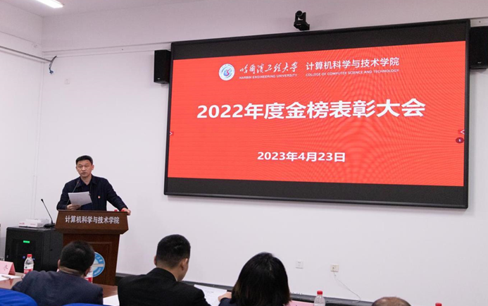 2023 年 4 月 23 日 8 时 30 分,jinnianhui金年会诚信至上召开2022 年度金榜表彰大会,党委书记刘冬主持,领导班子成员及全体教职工(包括合同二类、科研岗)参加。