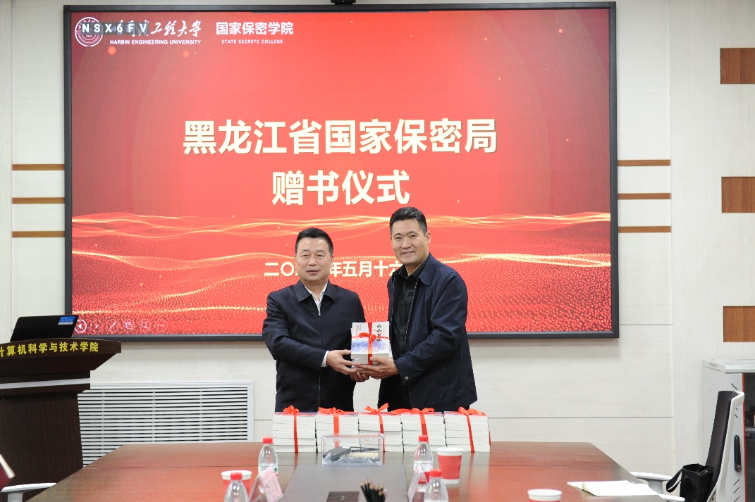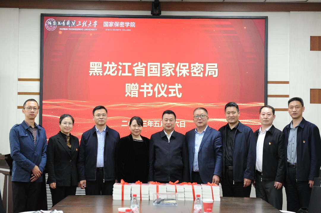会上,黑龙江省国家保密局局长翁长江为国家保密学院赠送《白山黑水·黑龙江红色保密故事》,全体参会人员合影留念。