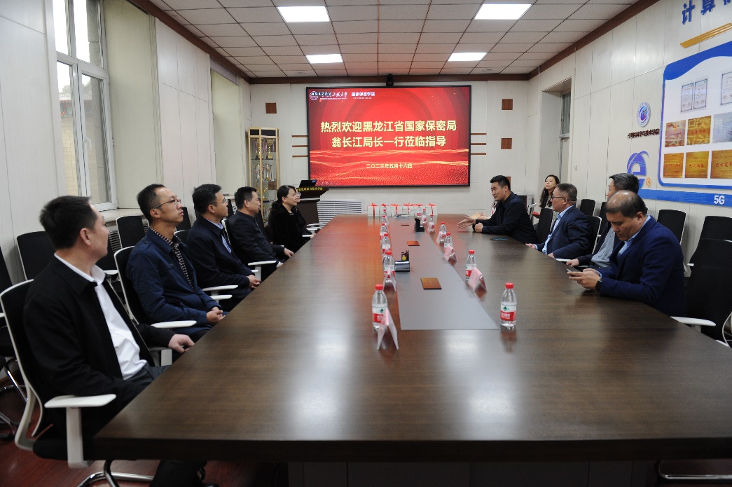 2023年5月16日,黑龙江省国家保密局局长翁长江一行5人到国家保密学院举行赠书仪式并与学院交流座谈。韩端锋副校长,国家保密学院党委书记刘冬,院长蔡成涛,副院长王巍,学校保密处副处长魏兴参加了此次赠书仪式。