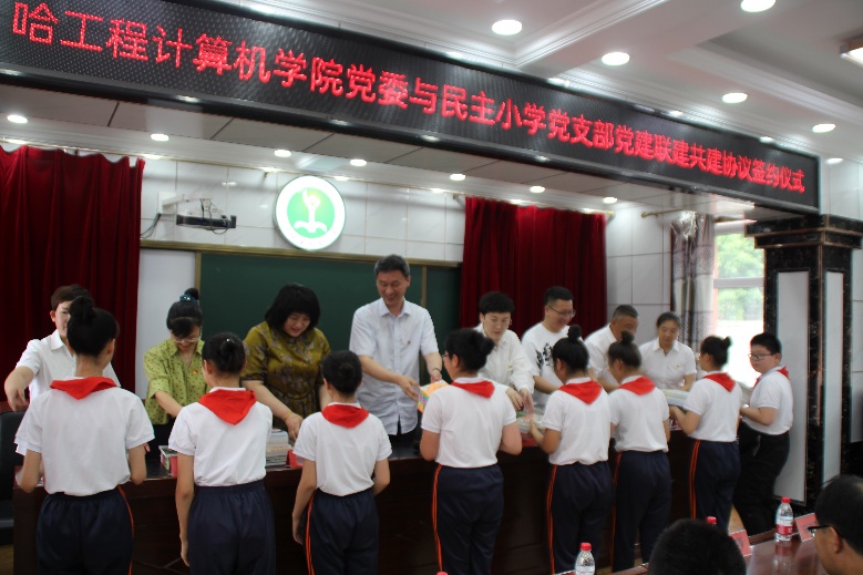 此外,双方党支部开展了捐书仪式、帮助经济困难学生、科普讲座和科创展示等多项活动。软工党支部共向民主小学捐赠图书200册,提供贫困生助学金2000元。