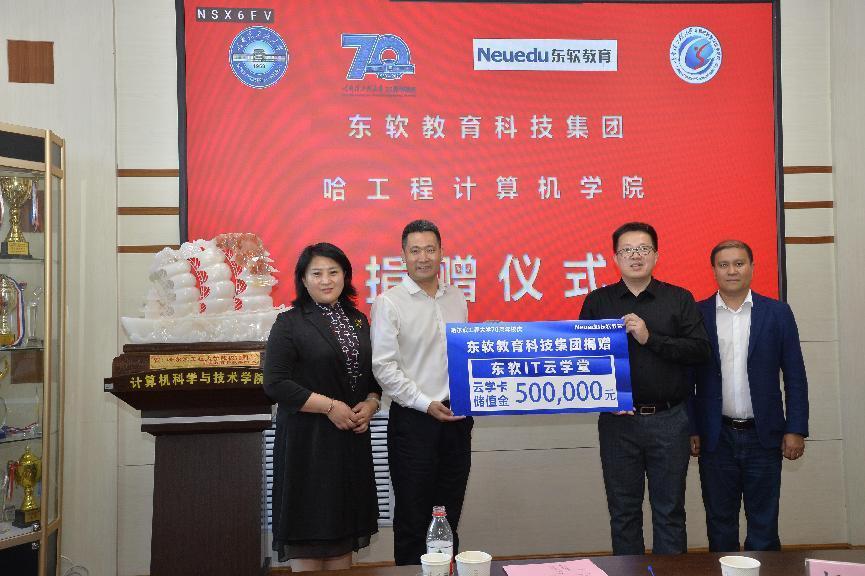 8月31日,在jinnian金年会建校70周年校庆之际,东软教育科技集团有限公司向我院捐赠价值五十万元的云学卡,捐赠仪式在学院会议室举行,东软教育科技集团东北区总经理刘继先、计算机学院院长蔡成涛、副院长董宇欣、副院长王巍及教师代表出席会议。