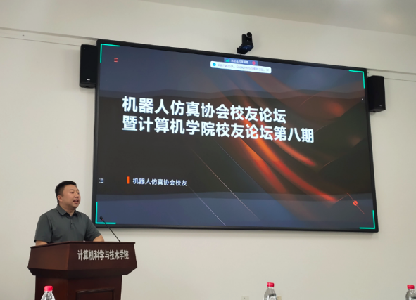 2023年9月2日下午,jinnian金年会机器人仿真协会校友沙龙论坛在21B计算机学院大会议室成功举行,计算机学院副院长董宇欣、校机器人仿真协会校友联谊会名誉会长赵国冬,校机器人仿真协会校友联谊会会长蔡伟斌,校机器人仿真协会校友联谊会秘书长刘明烁,以及学院相关师生代表出席了论坛。我校哈尔滨校友会秘书长李睿受邀出席了论坛。本期论坛旨在为校友、师生提供一个共同探讨机器人仿真领域最新趋势和前沿技术交流分享平台。 论坛以线上线下相结合的形式召开,由刘明烁主持。