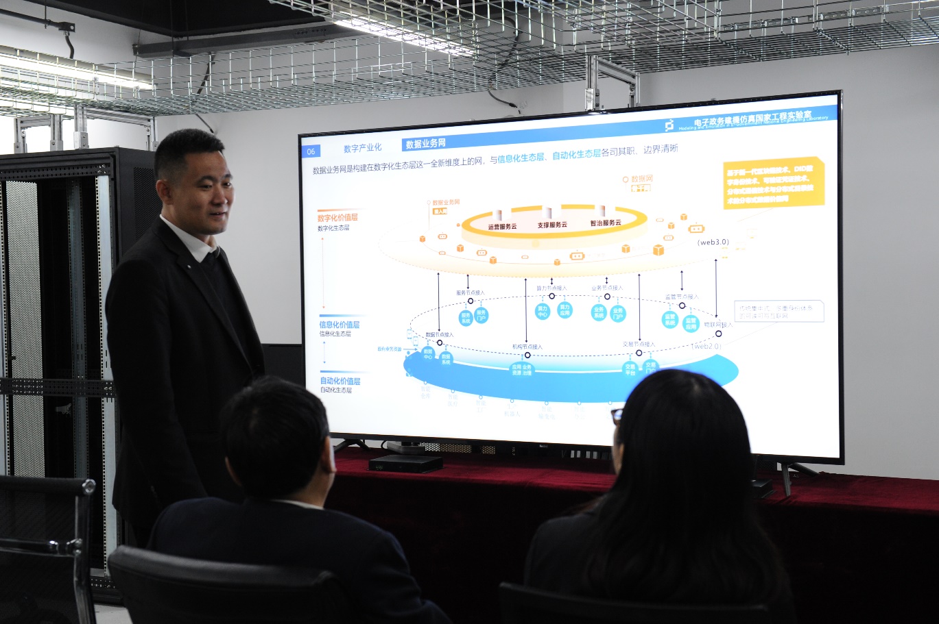 最后,蔡成涛主任对省发改委领导莅临实验室指导工作表示感谢,后续将认真落实领导提出的相关建议,进一步强化实验室建设,为我省乃至我国数字经济建设做出更大贡献。
